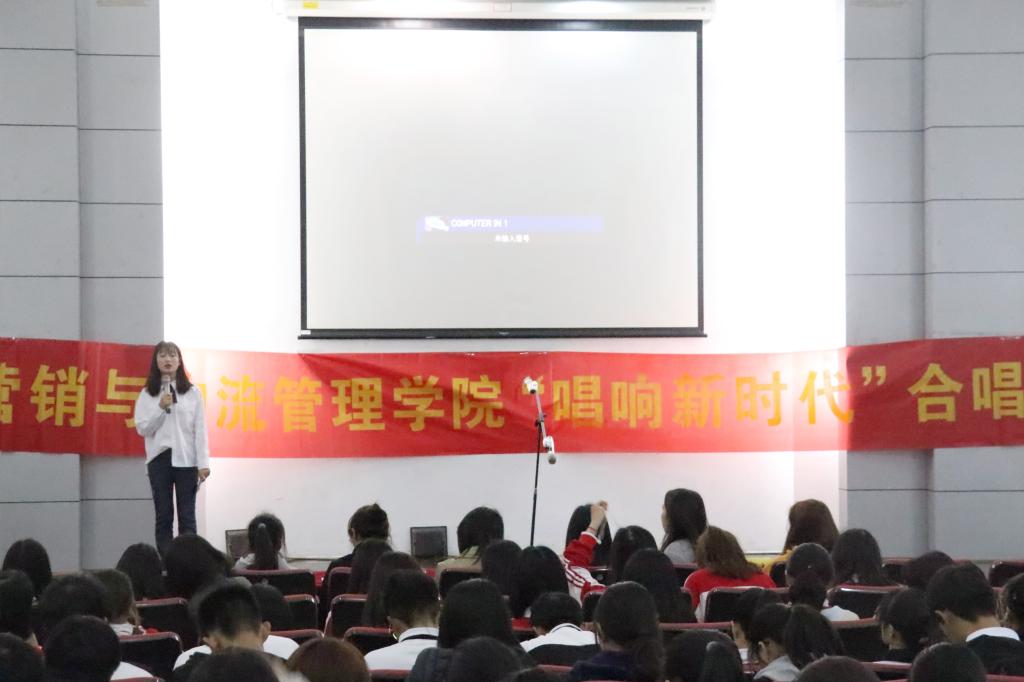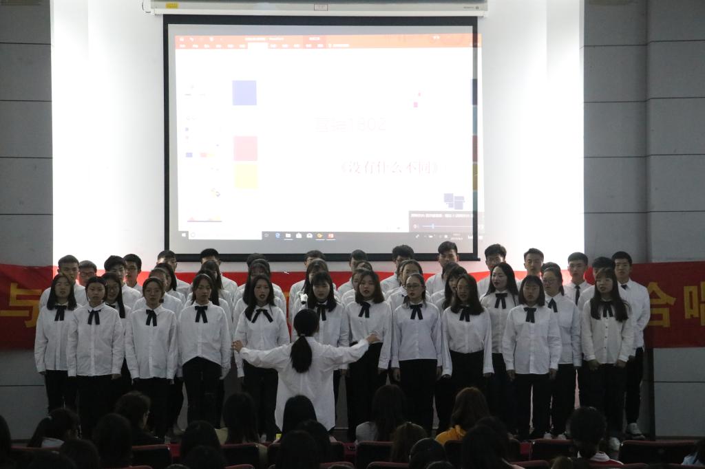各班级排队有序、着装统一,同学们用自然流露的肢体语言,深情并茂的演唱了《我爱你祖国》、《歌唱祖国》、《走进新时代》等歌曲。广告1801班同学别出心裁,在合唱《国家》时,配合了手语表演,对祖国母亲的热爱和赞美,并用浓浓的爱国情感表达着振兴中华民族的决心。营销1801班同学欢快的歌曲《我的未来不是梦》更体现了南财青年学子的正能量。