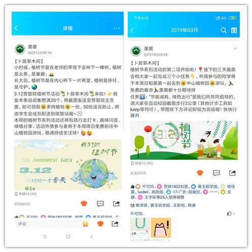 活动通过公司QQ公众号发起集赞活动,为同学们配送多肉;公众号发布觅动校园步行2千米打卡、植物知识的趣味竞答、分享自己喜欢或养殖的盆栽、旅途秀丽植物等,通过网络互动让绿色生活成为一种时尚——引导老员工养成绿色生活方式 。