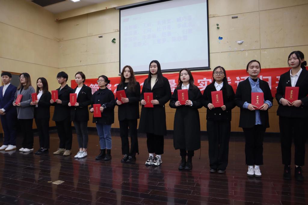 最后员工会主席团为获奖团队颁奖,获得一等奖的“红鲤鱼”实践团队,获得二等奖的是“绿区好汉”实践团,获得三等奖的是格物小分队、你们都不队、校园文化调查小组、微醺的小黍米、林夕小队。此外,“红鲤鱼”实践团队和新时代“绿区好汉”实践团荣获优秀团队称号。获得优秀调研报告称号的团队分别是:“红鲤鱼”实践团队和以“文”载“创”实践团队。接下来宣布的是先进个人荣誉的获得者:马舒筱、王洁、朱倩雯、臧巧菲、韩国薇、王珂、杜书菁、李成成、束国华、朱嘉敏、赵秦一、归懋容、童新元、王紫梦、陈欣慧。