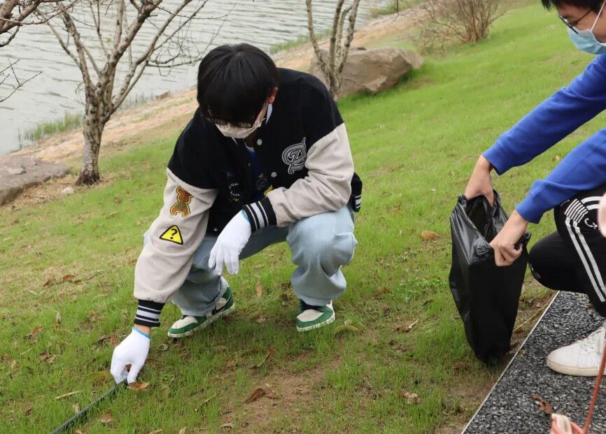 本次活动中大家穿着整齐的院服,戴着手套,拿着垃圾袋等工具,在简单的分工后大家便投入到热火朝天劳动中。同学们不怕脏,不怕累,积极主动的到每个角落去捡垃圾,大家分工协作,有条不紊;虽然天空下着蒙蒙细雨,但也挡不住同学们积极的热情,每位同学都感受着劳动的趣味;经过一段时间的辛苦劳作,每位同学手中的垃圾袋里都装满了散落在公园里的垃圾,脸上露出欣慰的笑容。
