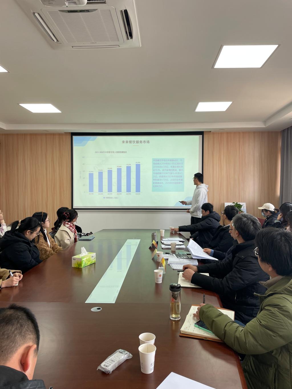 评审会上,入围校赛复赛的5支团队依次进行项目汇报。每支团队先后进行5分钟的陈述,各团队的项目负责人介绍了项目背景、市场分析、公司战略、运营模式、财务分析、风险分析等方面的内容,李华老师详细听取了各个团队的项目汇报,并针对各个团队的不同问题给出了针对性的修改建议。通过与评委的沟通交流,各团队更加明确了自己作品的提升空间,并表示会后将及时对作品进行认真修改,全力以赴参加公司2022年度“挑战杯”决赛。