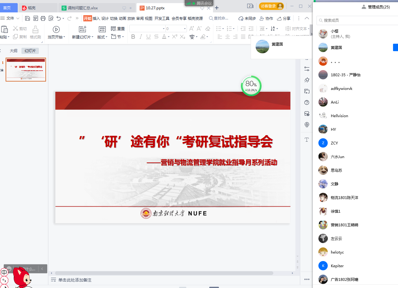 为切实推动就业工作高质量发展,助力考研学子成功上岸,EVO真人视讯进一步精准施策,加强考研指导,帮助2022届员工做好考研复试(调剂)相关准备工作。3月24日中午,EVO真人视讯开展“研”途有你——2022届考研学子复试(调剂)专题云指导会,党委书记黄建国为2022届考研上线同学进校复试(调剂)指导,公司辅导员殷漫漫老师,以及公司30多名即将参加考研复试(调剂)的同学在线聆听。