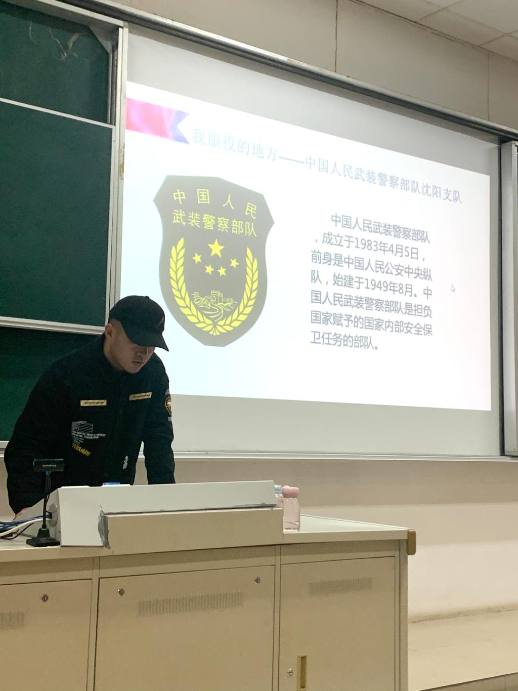 卞翔学长以演示文稿的形式为同学们介绍了军旅生活以及退伍后的福利政策。卞翔学长的经验分享主题是“青春的橄榄绿”。他向同学们介绍了自己的入伍想法是如何产生的,回答了“当兵苦不苦?”“当兵值不值?”等问题,为大家介绍了当兵的生活是痛苦并快乐着的,是充满收获感的。卞翔学长又结合自身以及身边战友的例子,为大家介绍了退伍军人的不同出路以及优惠政策。在宣传活动的最后,卞翔学长呼吁大家把握机遇,并留下了自己和武装部徐老师的联系方式,方便同学们提出疑惑之处。宣传活动中,同学们认真听讲,时不时拿出手机拍照记录。