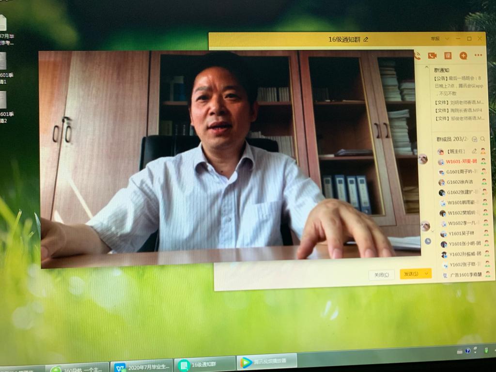 四年征途路,未来皆可期。公司2016级学子们即将离开母校,去开拓属于自己的广阔天空。EVO真人视讯6月15日晚通过腾讯会议举办了“相遇·成长·别离”主题班会,会上 2016级本导、辅导员通过视频、短信等方式为同学们送上温情的祝福,期待他们未来一路繁花似锦。
