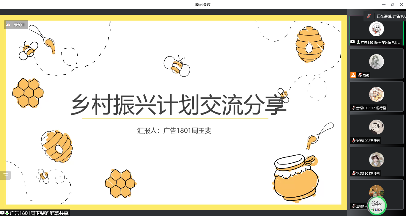 分享会伊始,曾获江苏省优秀毕业生、国家奖学金的林铄腈从学习、工作、活动及生活四个维度进行分享了备考选调生的准备,建议同学们找准目标、学习方法,做有心人;现任共青团连云港市连云区委员会乡村振兴志愿者的周玉斐从选择、备考等向大家分享参加苏北计划的经验;曾任公司员工会主席的王佳豪说道:“年轻就是要尝试。若不清晰自己想做什么,适合做什么,那就大胆去试一试。用我的亲身经历给学弟学妹们在人生重要选择的岔路口提供一点启发,多实践,加深对职业的认知感受。”曾任校员工会主席的伏鑫则侧重分享员工工作的经验,提到员工工作可以培养提升多方面技能,并以“终局思维”引入话题,分享了考取公务员的心路历程,鼓励大家以终为始,不断丰富自己的履历。最后,现服务于新疆生产建设兵团的程志远就自己参与支教活动以及备考西部计划新疆专项进行分享。